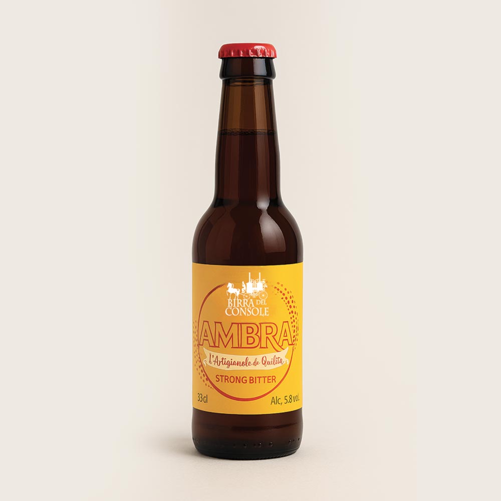 Birra rossa non filtrata e non pastorizzata. Artigianale ad alta fermentazione. Servire ad una temperatura di 8°-10°C. Ambra è una birra dal colore ambrato con riflessi rubino. Al naso si presenta con un bouquet di aromi che vanno dal caramello scuro al biscottato con sentori di frutta secca. Al gusto è dolce e delicata, rilascia un lieve amaro secco. Ottima con formaggi stagionati, carni rosse e pizze saporite.